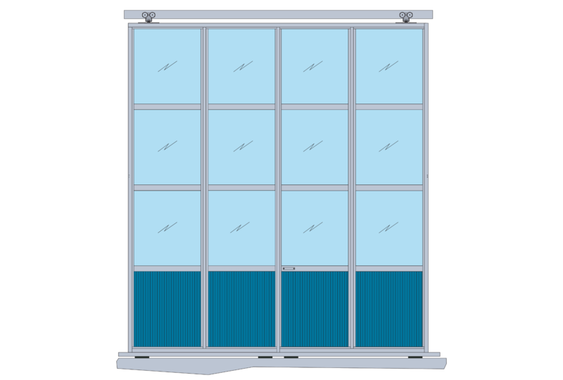 SCHUIF VOLGLAS PANEEL DEURDeze volglas deuren met paneelstrook zijn voor elke toepassing geschikt en voorzien van uitstekende isolerende eigenschappen. Daarbij laten ze veel natuurlijk licht in uw stal wat plezier geeft voor mens en dier.